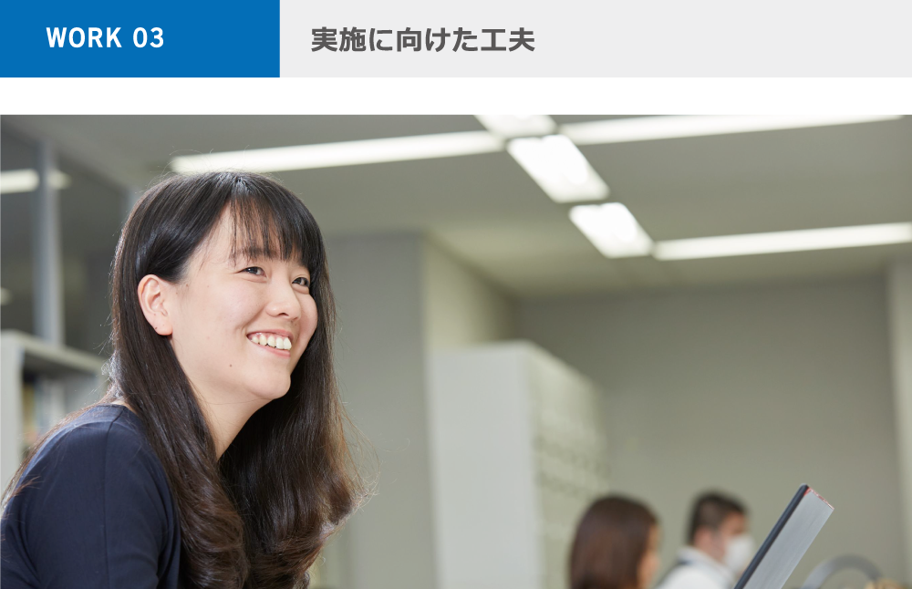 当社はワーク・ライフ・バランスを推進し、女性でも安心して働ける会社を目指して、新しい制度に積極的に取り組んでいます。今日、育児のため短時間勤務をする女性も増え始め、自分で仕事をマネジメントできる環境です。ワーク・ライフ・バランスの確保をするために、作業の二度手間、三度手間を省いたり、自分の作業状況を常にメンバーと共有し、いざという時に協力をお願いできる状況を作ったりなど、いかにして定時で帰れるようにするかを考えているため、毎日定時帰宅している社員も多いです。最近では水曜・金曜に必ず定時で帰るように通達を出しているので、社員のプライベートの時間も大切に考えています。